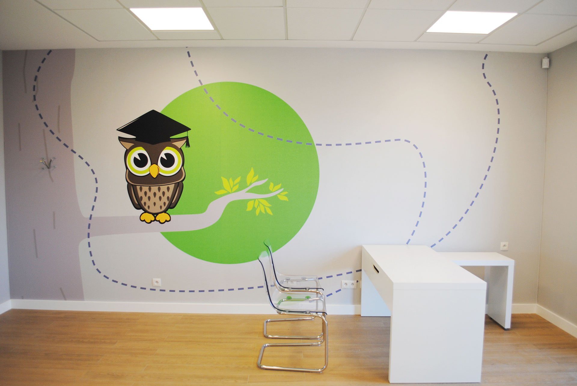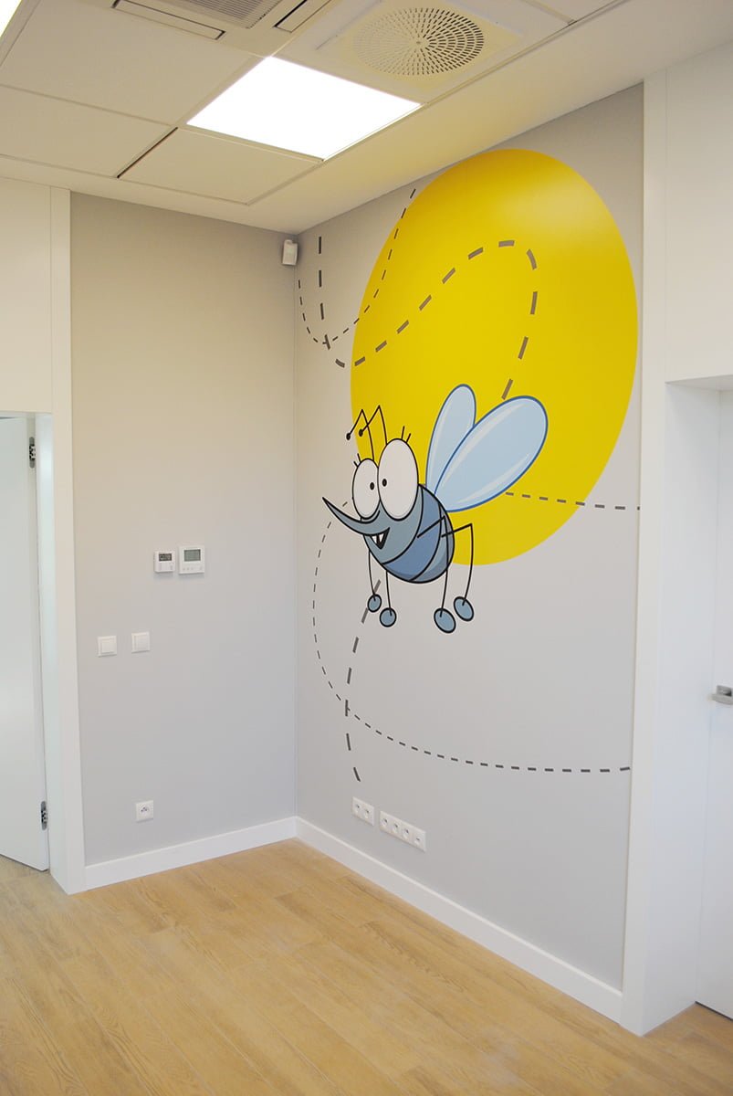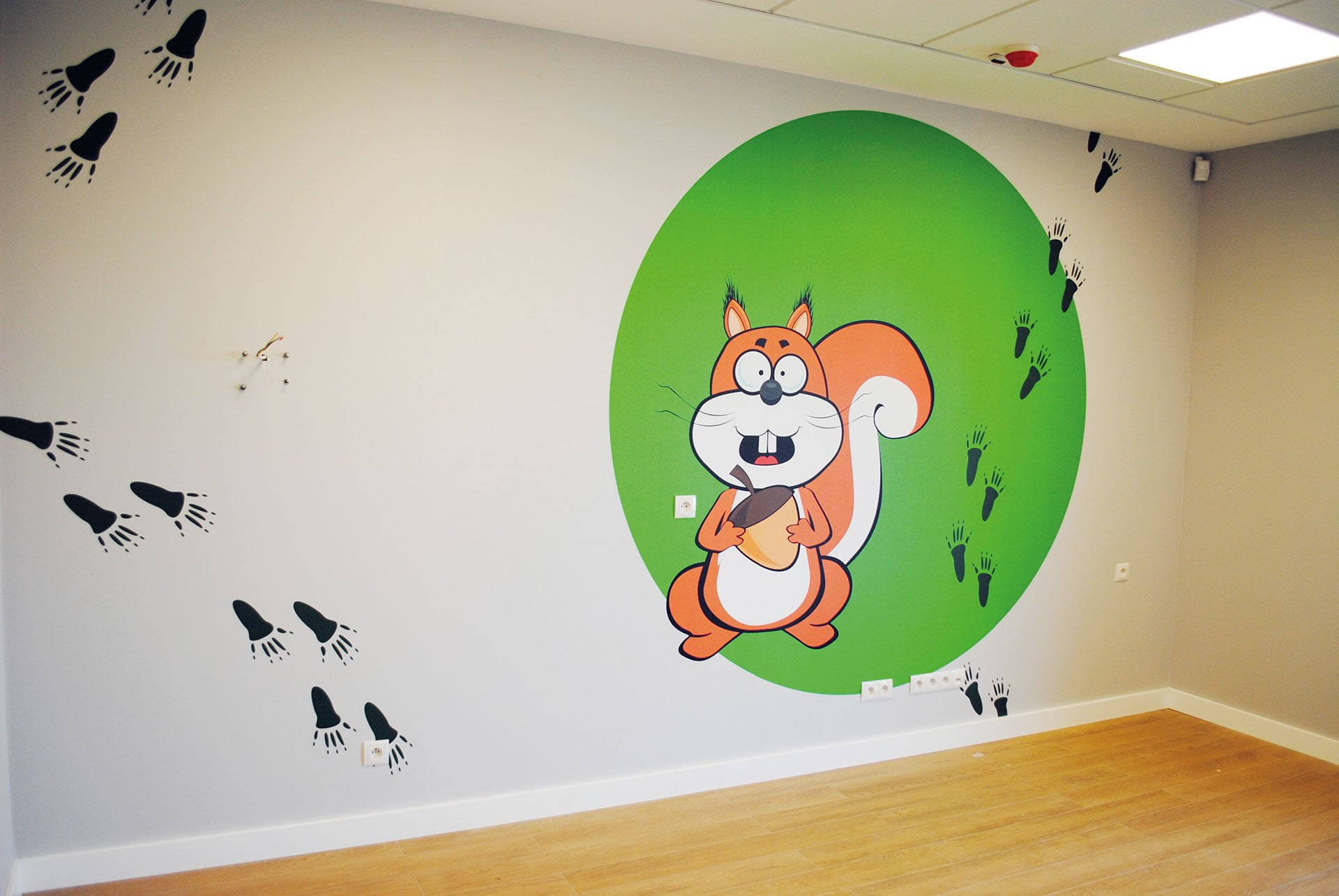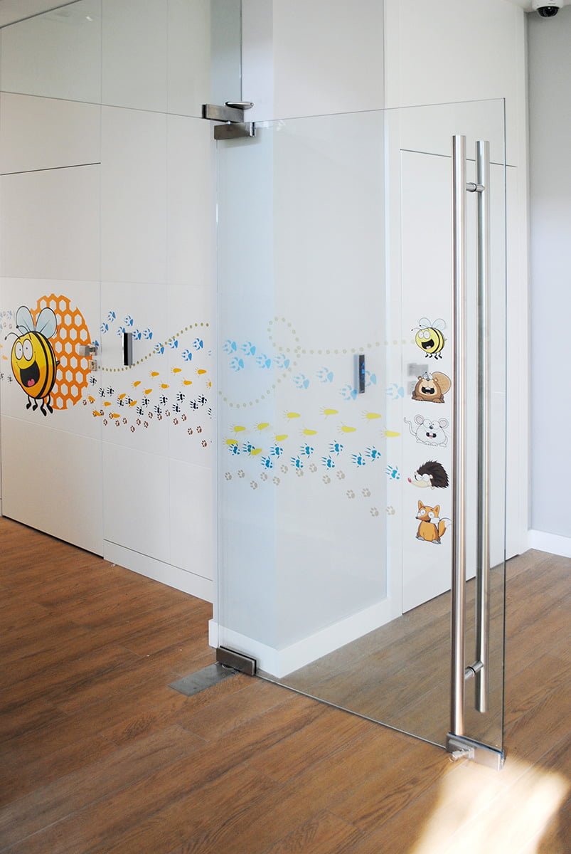 جراحة كل طبيب لها طابعها الخاص: سنجاب أو قنفذ أو ثعلب. عند تسجيل الوصول ، يتلقى الطفل تعويذة للشخصية المعنية. يصل الطفل إلى عيادة الطبيب باتباع آثار الحيوانات المطبوعة على جدران العيادة.